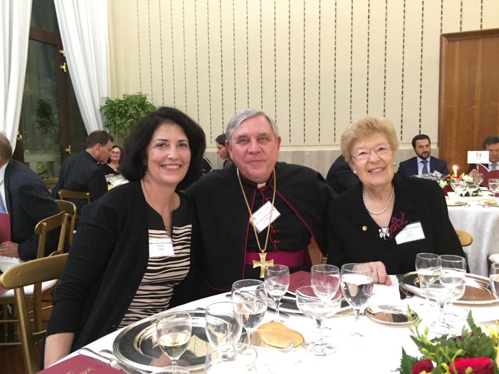 Paula N. John, Archbishop Jerome E. Listecki, and Erica P. John at the North American College in Rome.