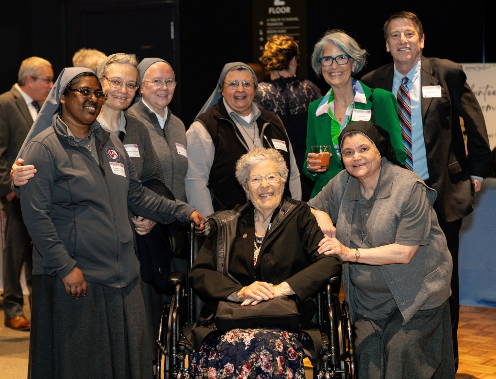 Sisters of Charity of St. Joan Antida with Erica P. John, Paula N. John, Gregory John, including Sr. Maria Rosa Muscarella (superior general) and Sr. Theresa Rozga (provincial leader).