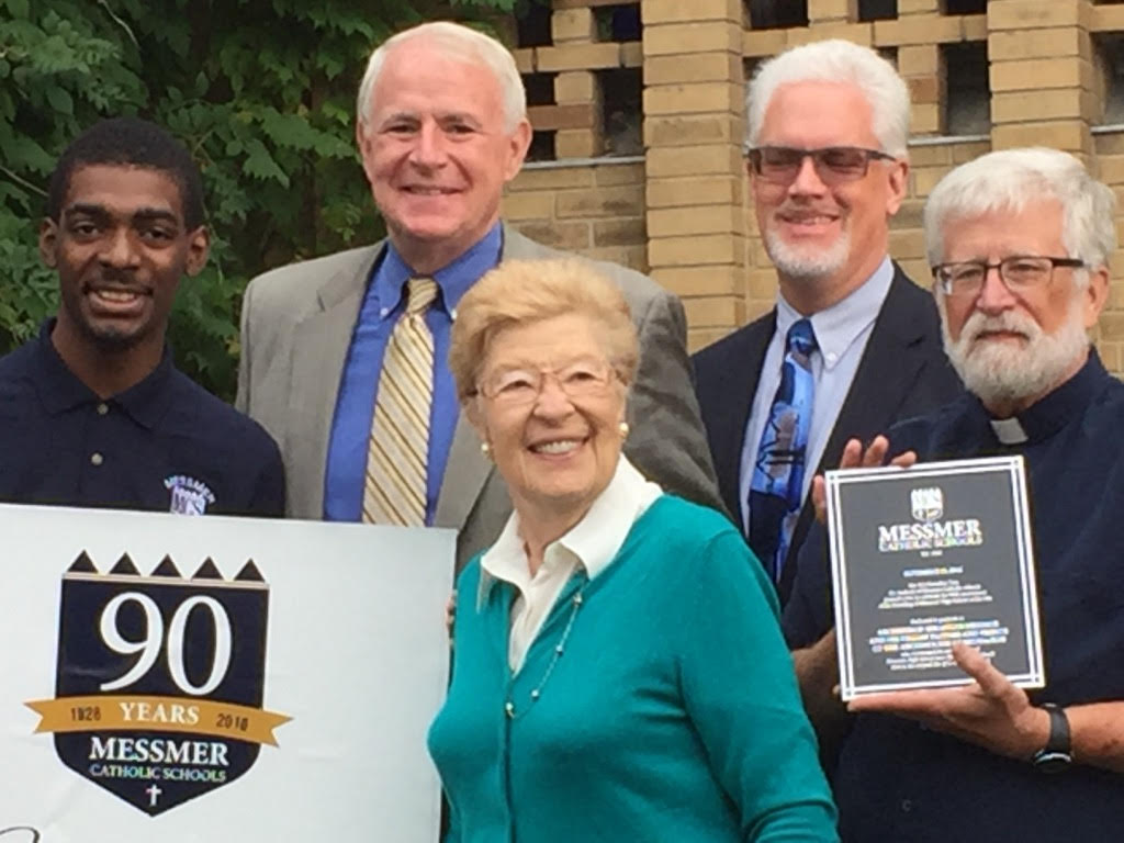 Erica P. John at a groundbreaking event with then Milwaukee Mayor Tom Barrett, Jim Piatt (president) and others associated with Messmer Catholic High School