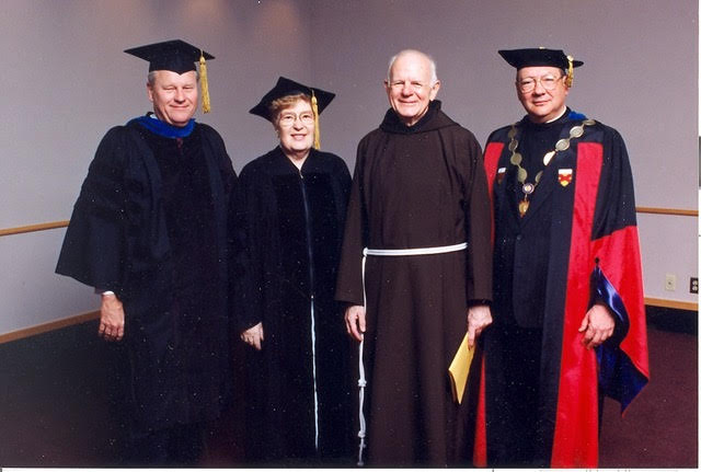 Br. Booker Ashe, O.F.M., Cap., Erica P. John, and Fr. Albert DiUlio, S.J. (president of Marquette University)